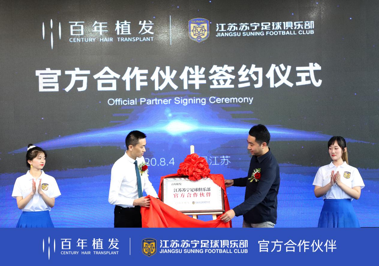 【共倡健康 共赢未来】百年植发携手江苏苏宁足球俱乐部签约官方合作伙伴